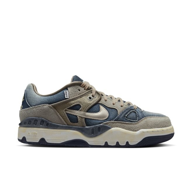 鞋款以橄榄灰(Olive Gray) 配色呈现,高品质工艺打造,凸显Levi's® 与NIGO标志性的复古做旧美学,完美契合双方一贯的设计内核。鞋面采用做旧牛仔布与翻毛皮拼接打造,两种材质碰撞交织出丰富的视觉层次。细节设计上,右脚鞋侧缀有经典Levi's® 旗标,金属质感swoosh标识随步伐折射光影;EVA 中底经特别氧化处理呈现自然泛黄,刻画岁月痕迹;橡胶外底则延续 Nike 一贯的耐用与性能。每一处细节,皆是三方基因的共生表达。