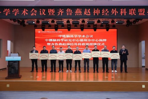 开幕式后,分别进行了齐鲁燕赵神经外科联盟成员单位授牌,山东省医药卫生重点实验室(建设单位)——神经外科实验室、中挪脑科学研究中心德州分中心揭牌仪式,为脑科学与神经医学创新发展筑牢了平台支撑。