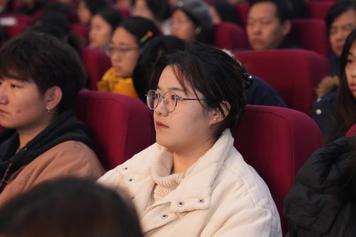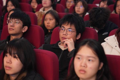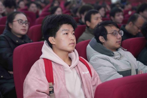 聆听“传承2025”科学家精神报告会的学生